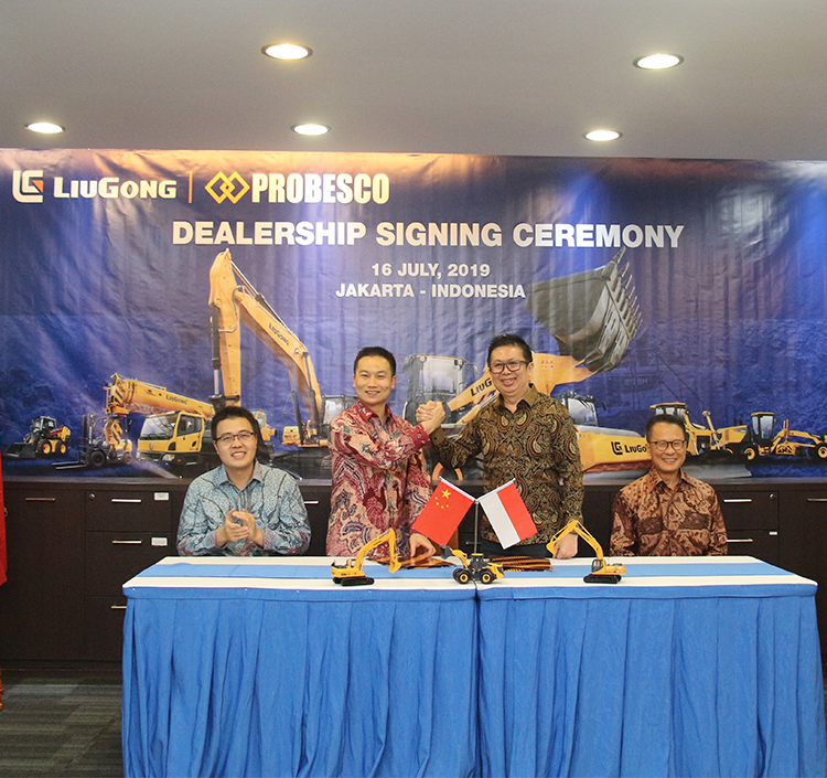 2019年7月16日雅加達時間下午2點整,廣西柳工機械股份有限公司和印尼新代理商PT.PROBESCO DISATAMA(以下簡稱PBC)的戰略合作簽約儀式在雅加達Kem Tower大樓PBC總部舉行。