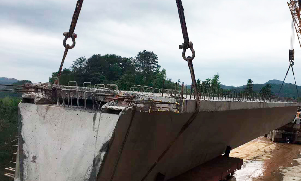 面對高達17m,重達60t的棘手場面,柳工起重機以專業吊裝橋梁混凝土結構的工況,實現了穩穩起吊、平穩平移、精準落地等一系列標準動作,把重量60t的橋梁穩穩放在基座上。精準、平穩、可靠的吊裝性能為后續工作的順利開展提供了強有力支持,贏得了客戶和施工方的一致稱贊。