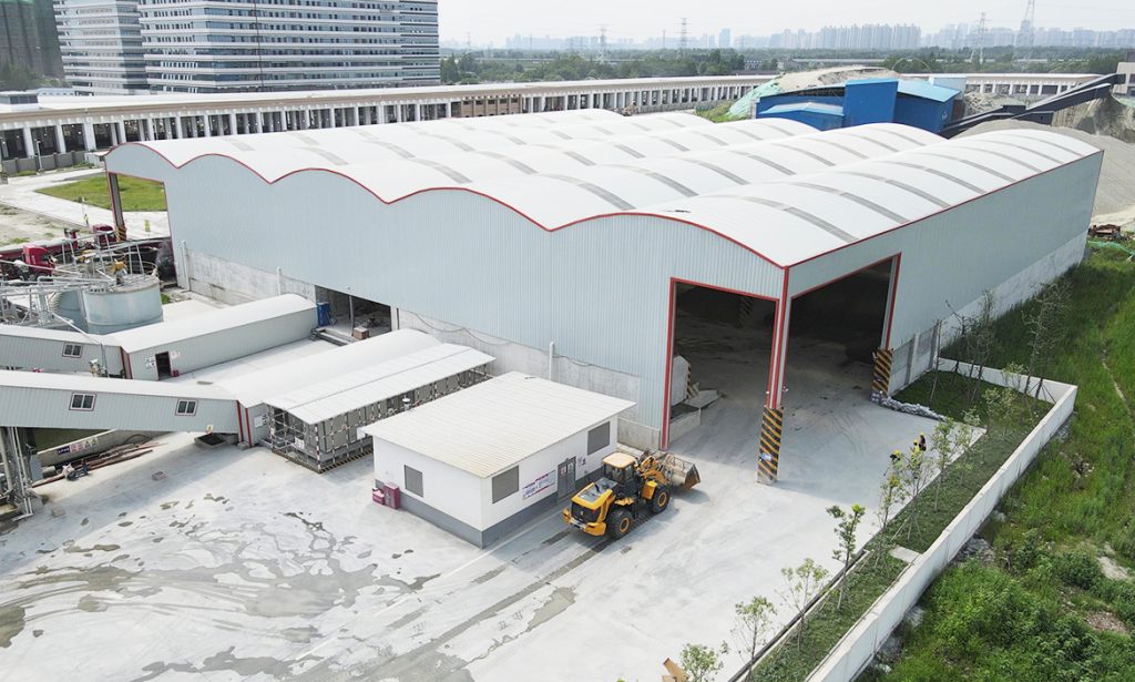 和傳統的拌合料生產工廠不同,這里別有洞天。沒有揚塵,污水、廢料都從隱秘的管線中直接處理后排放,“綠色”成為這個攪拌站最大的特色。