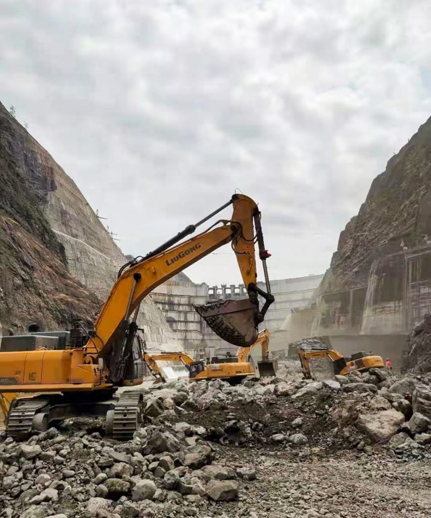 早在白鶴灘水電站初期建設(shè)的時期,柳工設(shè)備就參與其中。由于當(dāng)時國產(chǎn)品牌還沒有得到用戶的完全信任,所以建設(shè)初期多是日系品牌獨領(lǐng)風(fēng)騷,多臺柳工20噸級的挖掘機主要參與大壩建設(shè)的輔助性工作。