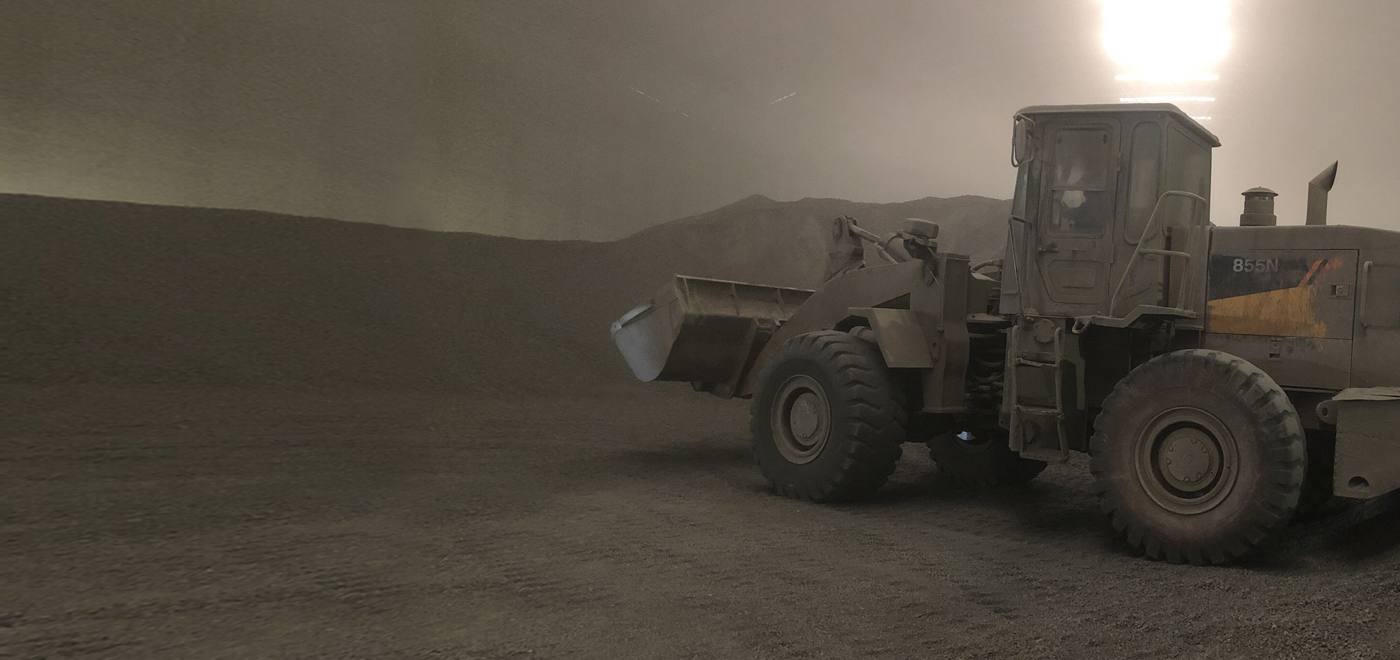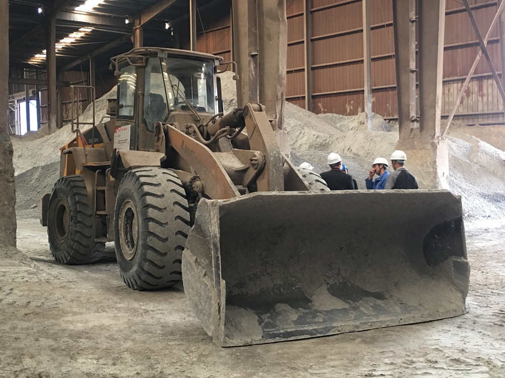 在走訪過程中,我們了解到廠內還有一臺高機齡柳工設備正在料倉內生產作業。因現場的作業環境塵土過大,工況較為惡劣,在余總的帶領下,我們在做好了充分的安全保護措施后有幸進入到生產車間,一睹柳工855N的威風。